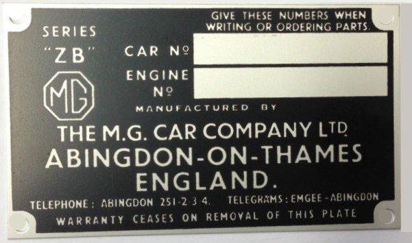 REPLACEMENT BLANK VEHICLE IDENTIFICATION NUMBER PLATES FOR AUSTIN MORRIS CARS, MG & MINI's
