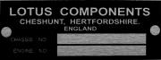 Lotus replacement blank VIN chassis plate.