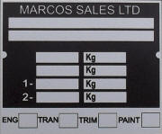 Marcos replacement blank VIN chassis plate.