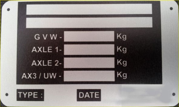Multi Axle Trailer VIN Chassis replacement weight plate.