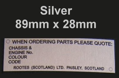 Sunbeam Alpine Tiger Hillman Minx Chassis VIN Plate, silver with corner on. Paisley, Scotland.