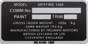 REPLACEMENT BLANK VEHICLE IDENTIFICATION NUMBER PLATES FOR STANDARD TRIUMPH CARS